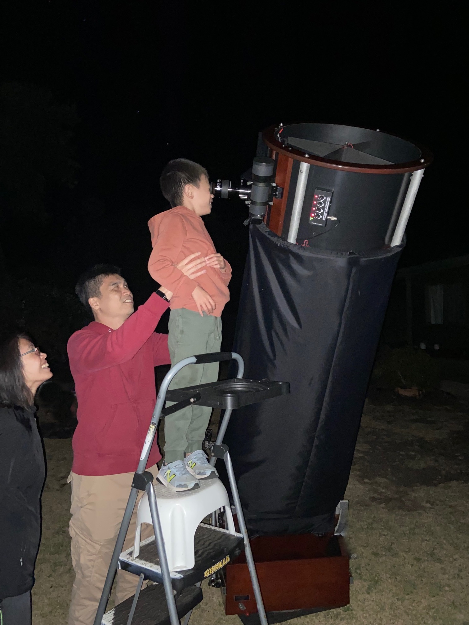 What better way is there to have a night out with the family, than being out under a sky filled with mystery and beauty? That’s the night sky under the stars with Honeysuckles Astronomy Tours. And Zon, Shir Mei and young Flynn did just that this week much to their delight. The sky was awash with fabulous clusters, nebulae, star forming regions and galaxies. It’s an eye-opener like no other and a great education for adults and children alike.