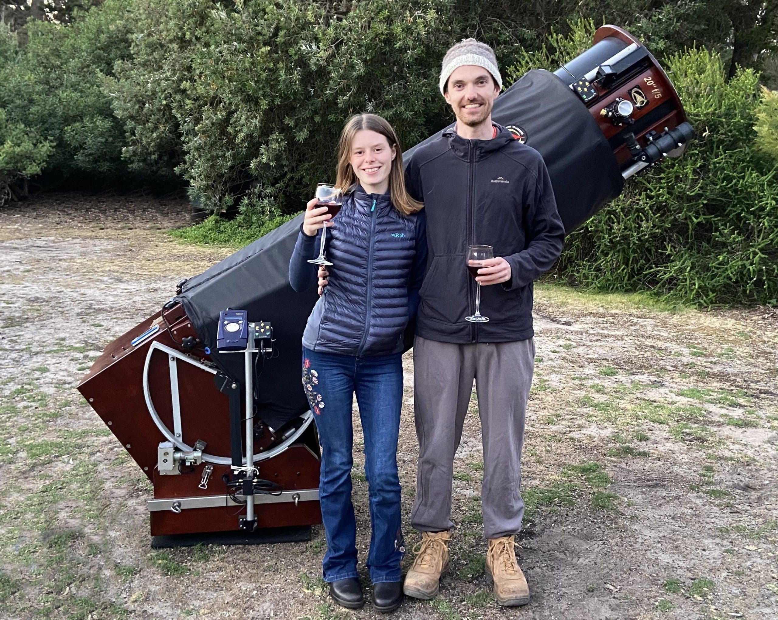 … The southern night skies are also favourably blessed over the northern hemisphere’s counterpart, for wonderful objects to see and at our tours we select the best of the best to view. James and Anna loved everything they saw and when Anna returns to work on her next sheep farm adventure in South Australia, she will have an interesting “yarn” or two to tell those sheep about her trip out east … to Honeysuckles Astronomy Tours! 🙂