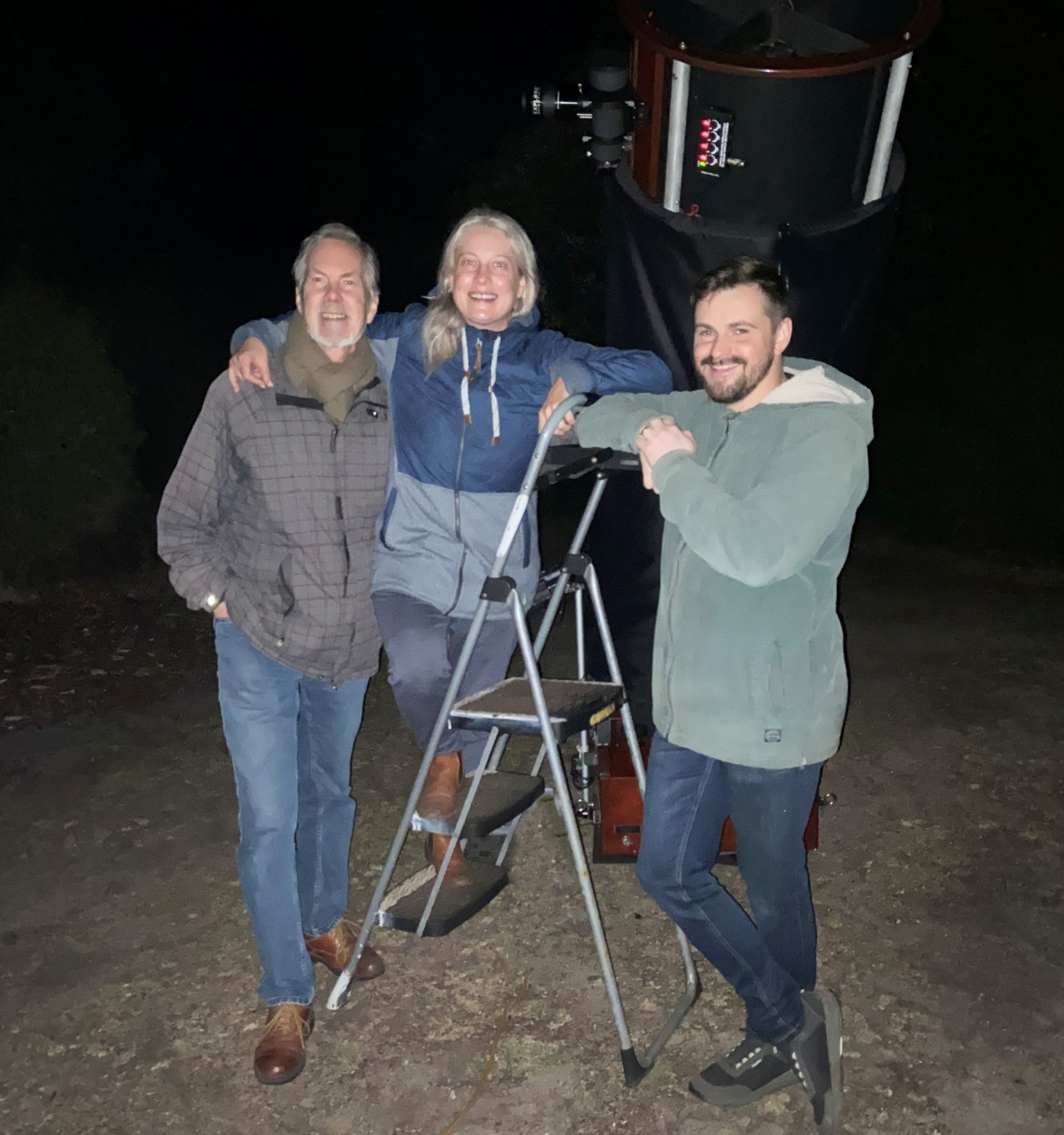 For a local Gippsland family living in Sale, Lia’s Christmas present for dad Norman and partner Alex was a treat to remember. To the background sounds of a tranquil ocean just metres away, the three had a fabulous time in very pleasant conditions observing an array of the Southern Sky’s finest offerings. Alex, originally from France, was seeing a sky in detail that was entirely new to him – an added element for Alex of our astronomy tour.